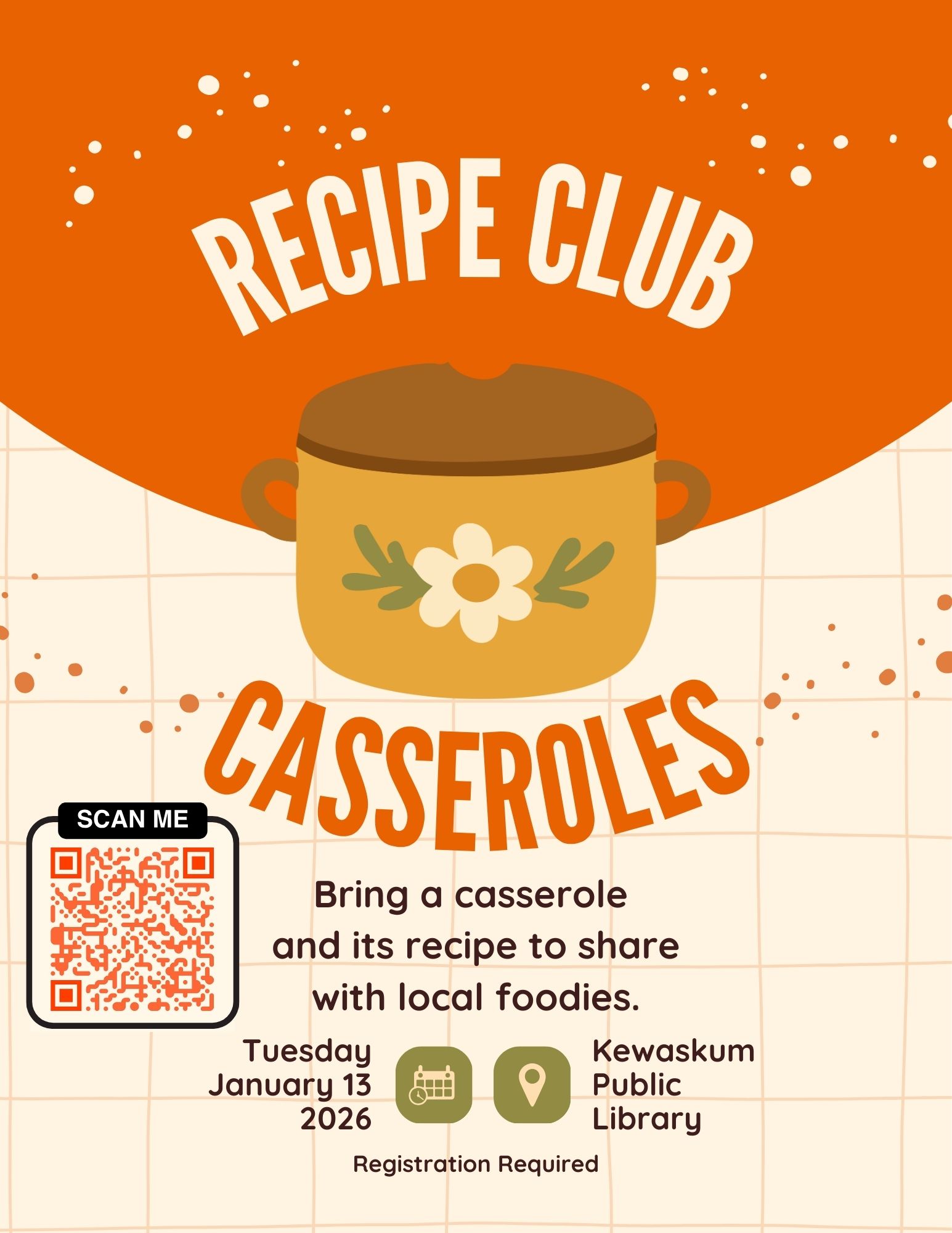 Adult Programs YARN & YAP– January 27th 6:00-7:00 PM YOGA MIX – 2nd Tuesday of the month 5:30-6:30 PM RECIPE CLUB – January 13th at 1:30 PMJanuary’s Theme : Casseroles