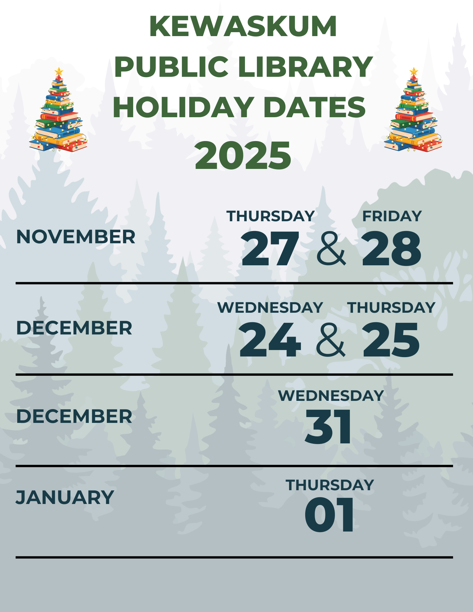 Closures Sometimes it is nice to read at home. Please note our closures for the remainder of the year.