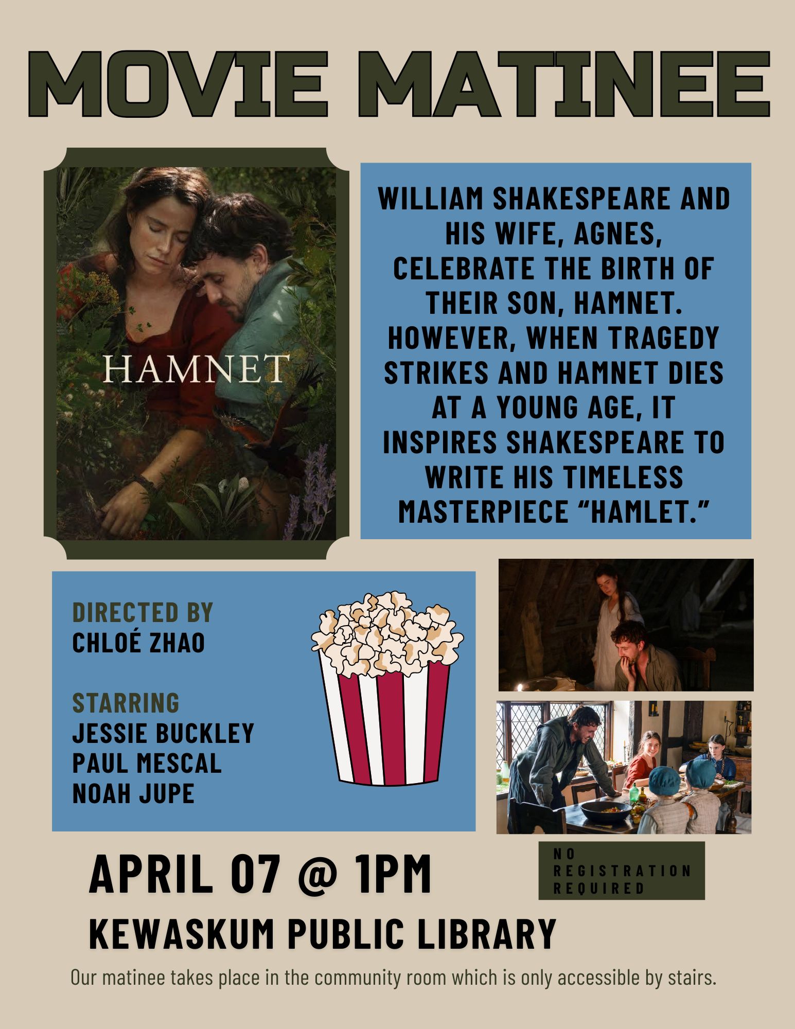Join us for movie matinees featured once a month at 1PM.