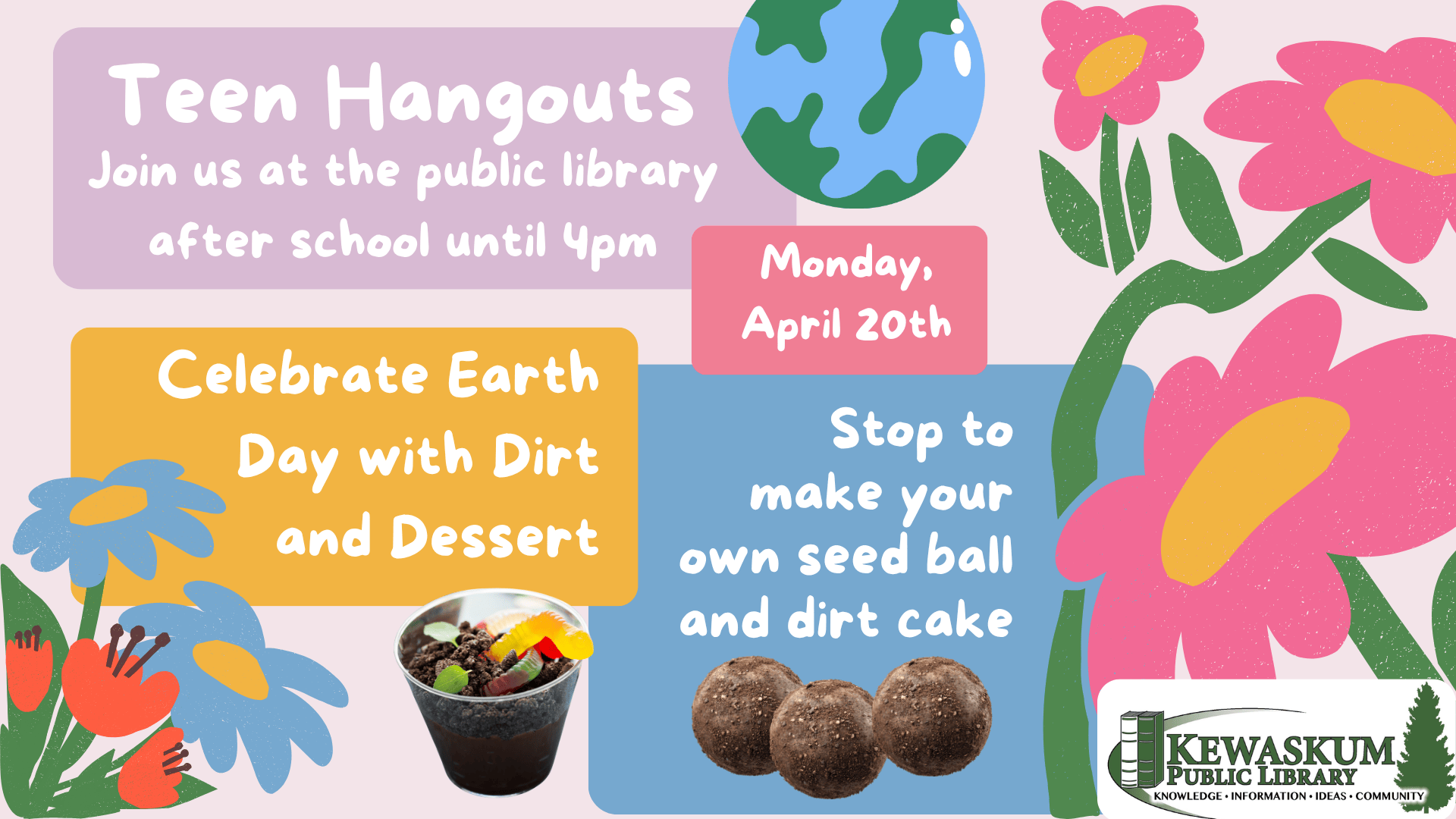 4/20: Dirt & Dessert – Celebrate Earth Day at the library! Stop by after school to make your own dirt cake and a seed bomb to take home.